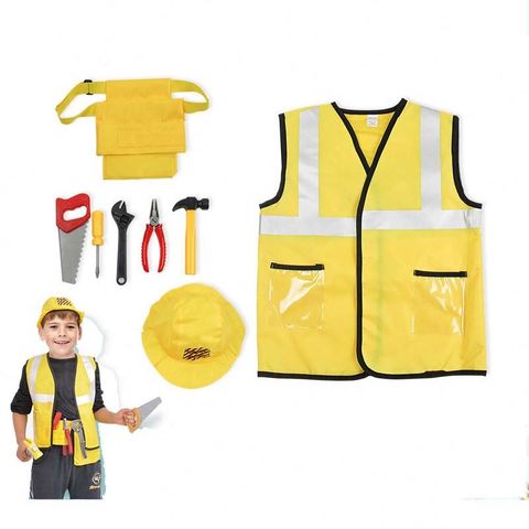 ชุดเครื่องแบบพนักงานก่อสร้างสำหรับเด็กผู้ชายชุด HCBC-002หมวกเสื้อกั๊กเข็มขัดเครื่องมือ